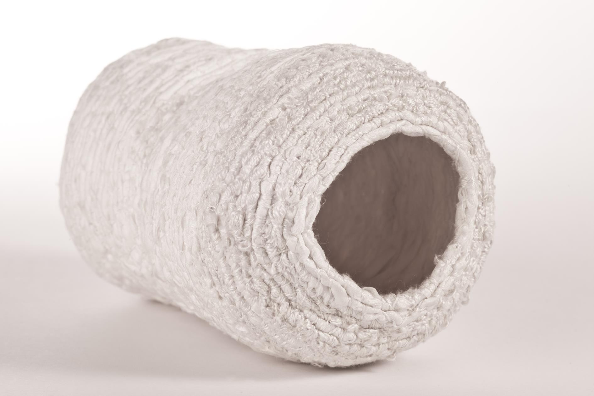 Date made: May 2009 Cocoon I is made from silk; a high value product. The form of the cocoon relates to the beginning of the process of process, a place to hide or change. Around the inside of the are four labels reading; What, Who, Why, When. The words challenge the viewer to think of the origins of the object. Alienation by choice or circumstance.